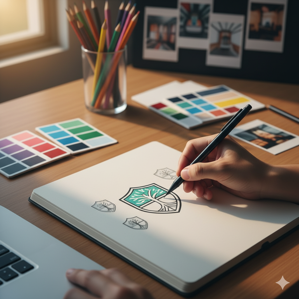 • นักออกแบบจะนำข้อมูลที่ได้มาวิเคราะห์และกำหนด แนวคิดหลัก (Core Concept) ของโลโก้ และตัดสินใจเลือกประเภทของโลโก้ที่เหมาะสมที่สุด (เช่น Monogram, Wordmark, Mascot, Abstract Mark หรือ Combination Mark)